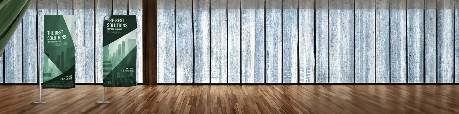 Possible applications are trade fairs, the point of sale/checkout area, etc. The format is freely selectable, eyelets and hemstitching are available for further processing. The maximum print width for decorative fabric is 152 cm. ATTENTION: If you want eyelets/hemstitching, allow for 5 cm more material all round when creating the print file. With a 5 cm hemstitch, you should allow for 10 cm more fabric all round. It is best to place important information or logos 15 cm away from the edge so that nothing of your message is lost.