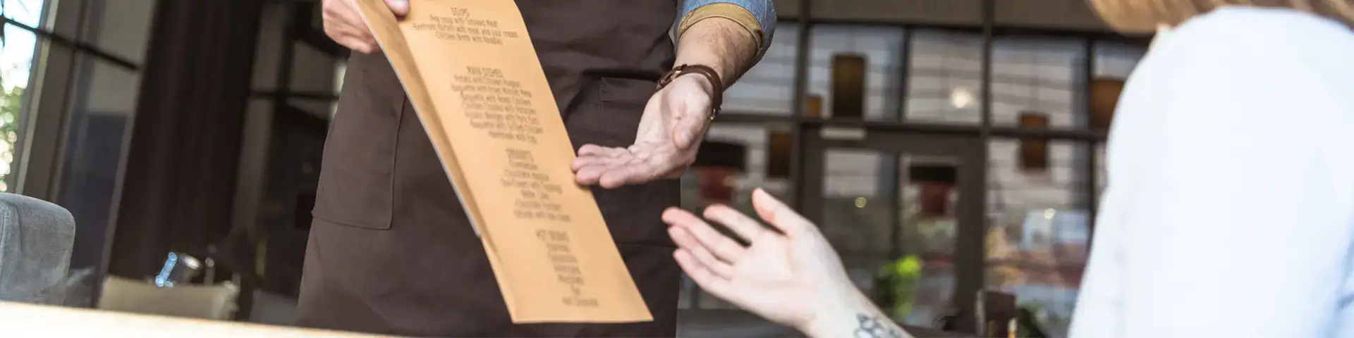 We can print menus for you in any format, finished for outdoor use or in an elegant hardcover if required. In high and low print runs.