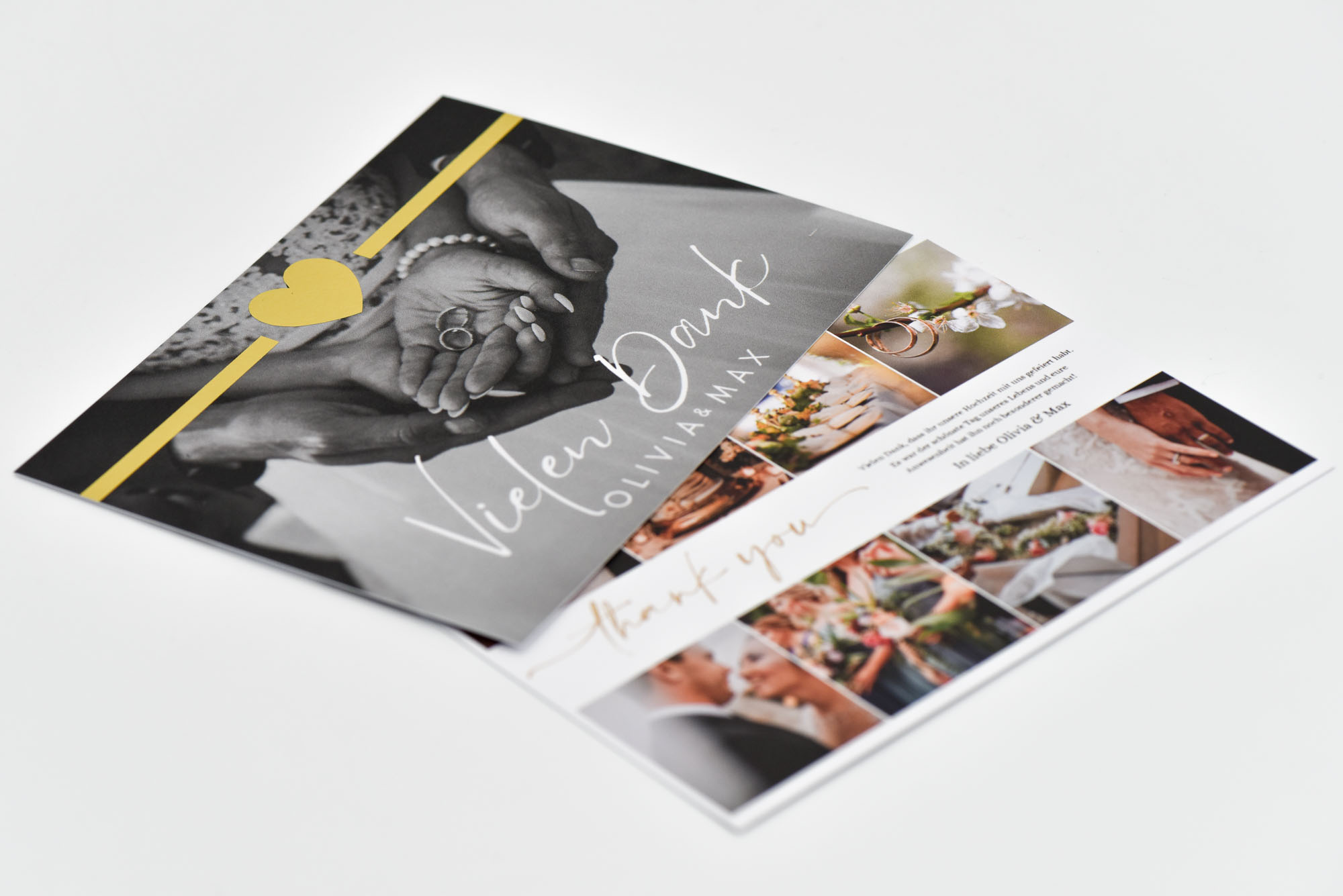 High-quality photo printing papers (matt or glossy) in heavy grammages of approx. 200-350 g/m² ensure that your card feels great in the hand.