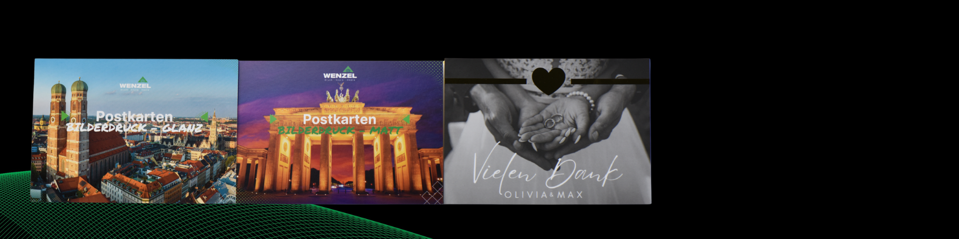 Postcards are small, direct and stick in people's minds - whether they end up in the letterbox, enclosed in a parcel or as a save-the-date on the fridge. At our Wenzel print shop in Munich, we print your postcards exactly as you need them: high-quality, robust and in the right format for your purpose.